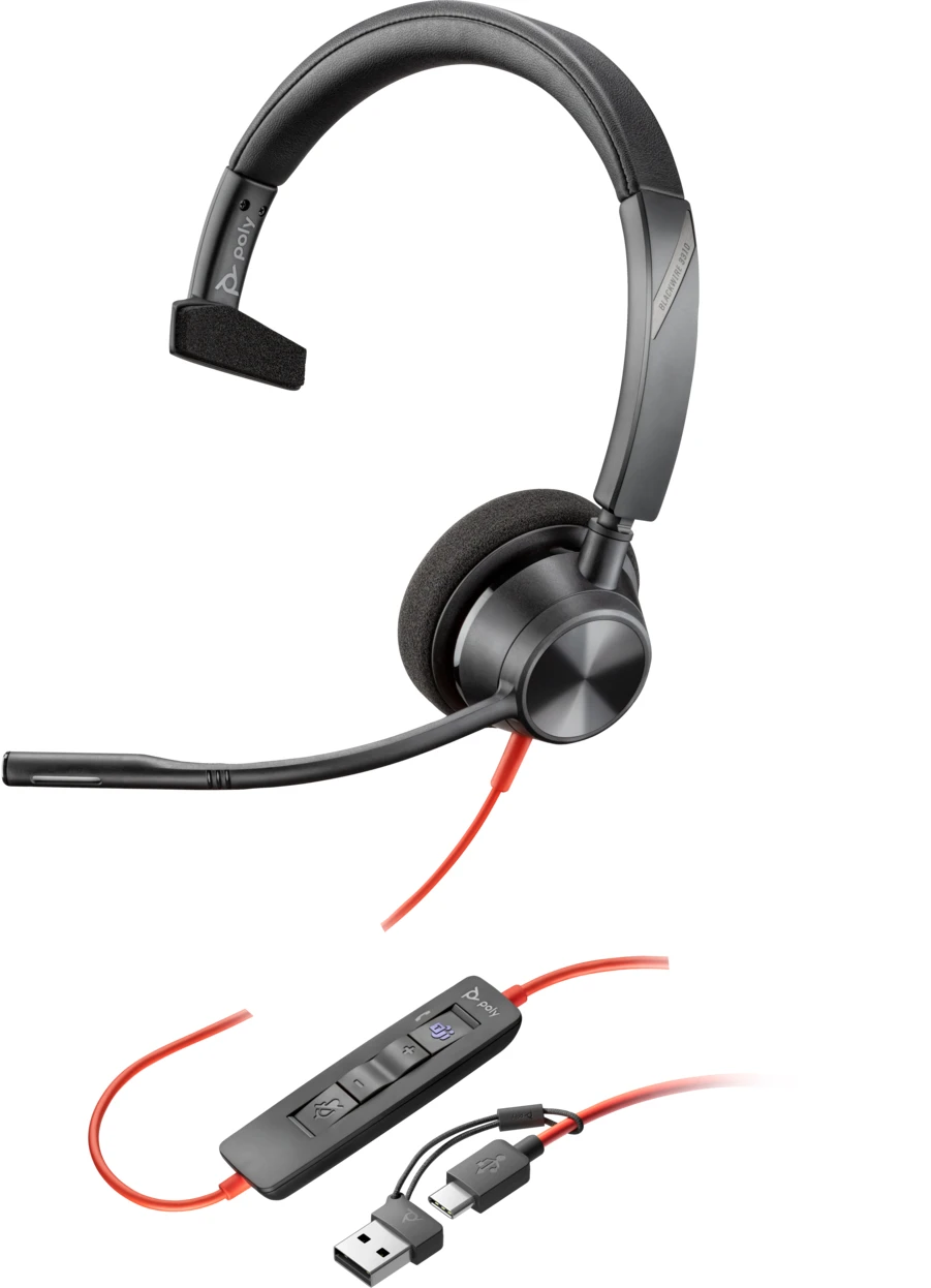 HP Poly Blackwire 3310 Monaurales USB-C Headset Microsoft Teams zertifiziert + USB-C/A Adapter Schwarz