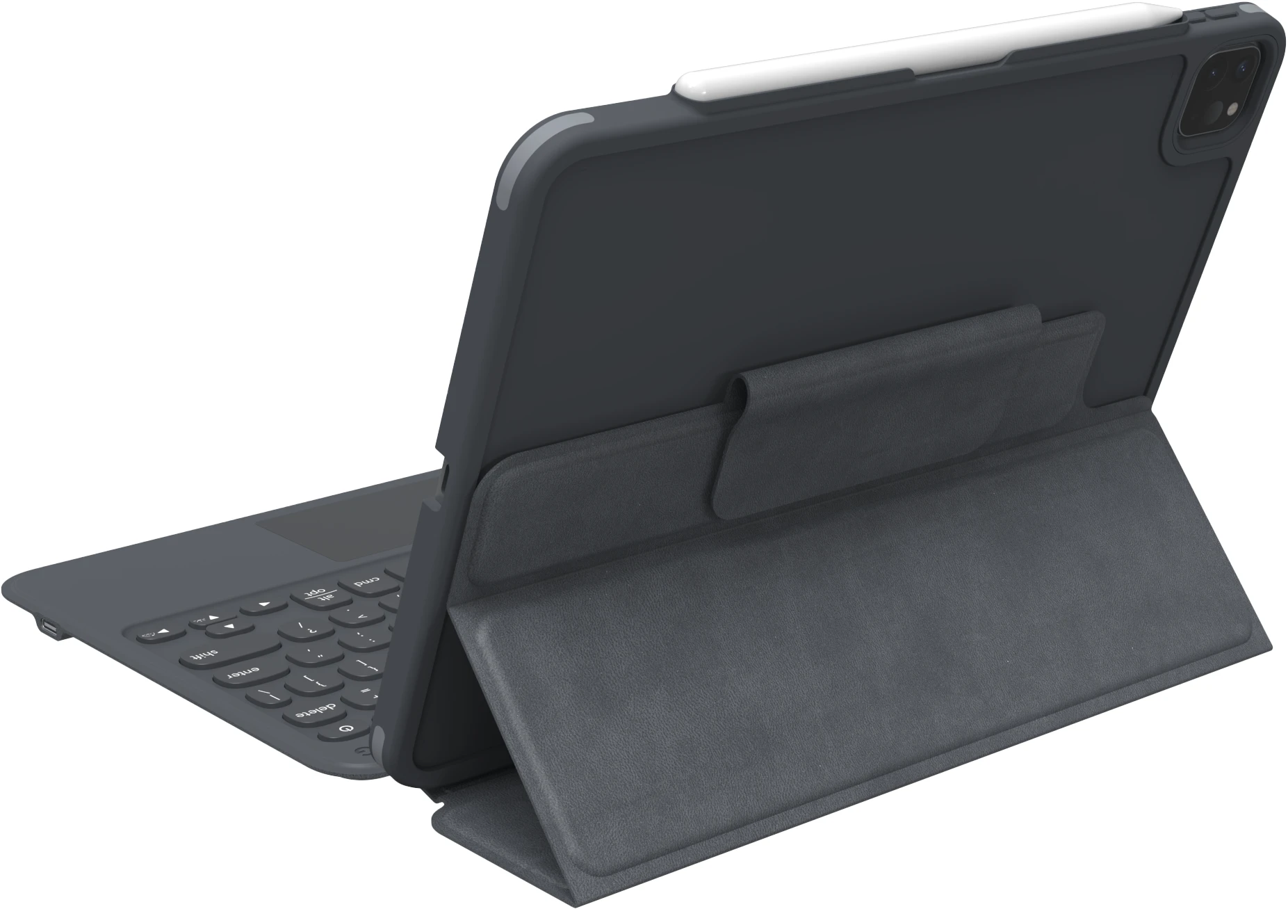 Verwandeln Sie Ihr Tablet in eine leichte, tragbare Workstation. Pro Keys with Trackpad hat einen verstellbaren Ständer, nach vorne gerichtete Lautsprecher Anschlüsse und eine Halterung für Ihren Apple Pencil oder andere Stifte. Die Tastatur und das Gehäuse lassen sich abnehmen, um sie an unterschiedliche Verwendungszwecke und Arbeitsumgebungen anzupassen.