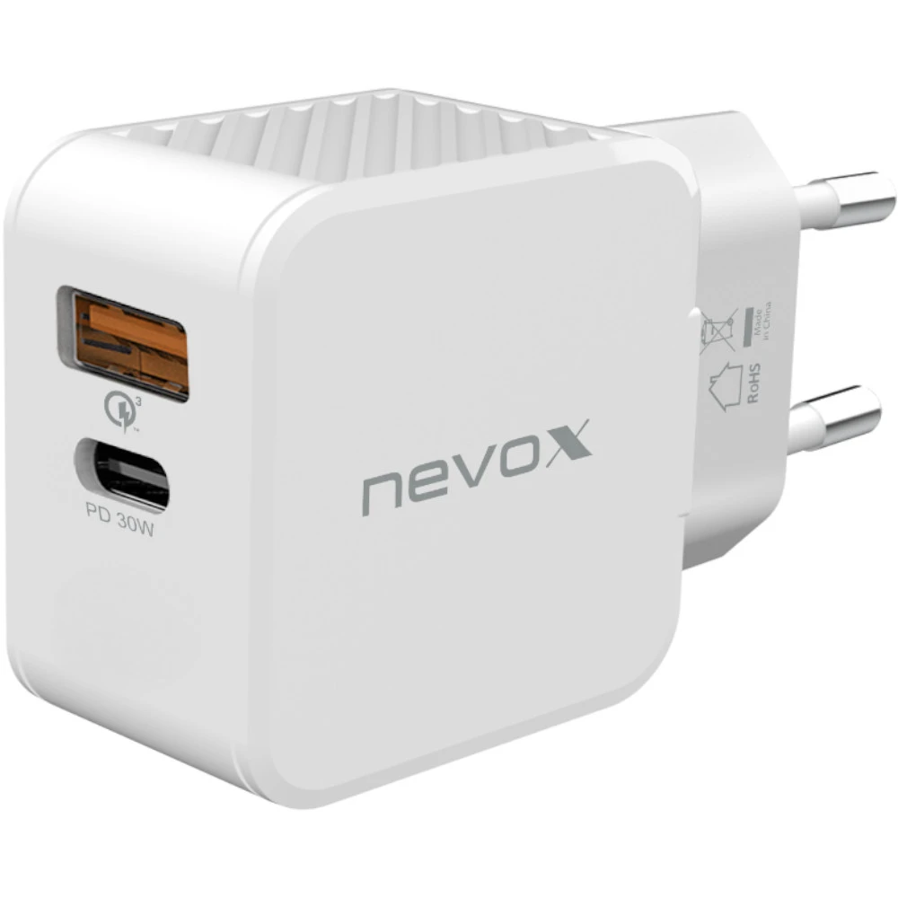 Nevox USB-C PD + QC 3.0/PPS Ladegerät 30 Watt Weiß